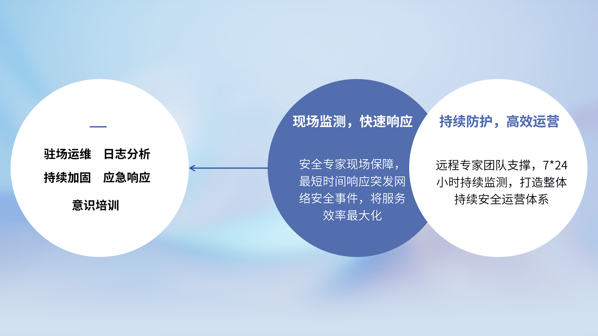 针对客户行业特性,,,,提供专属的一站式安全管理服务,,帮助客户全面感知网络空间威胁,,,,通过安全专家的线上、、线下防护支持,,实现风险闭环,,,,将安全保障常态化,,,为客户打造常态化安全运维运营服务。。